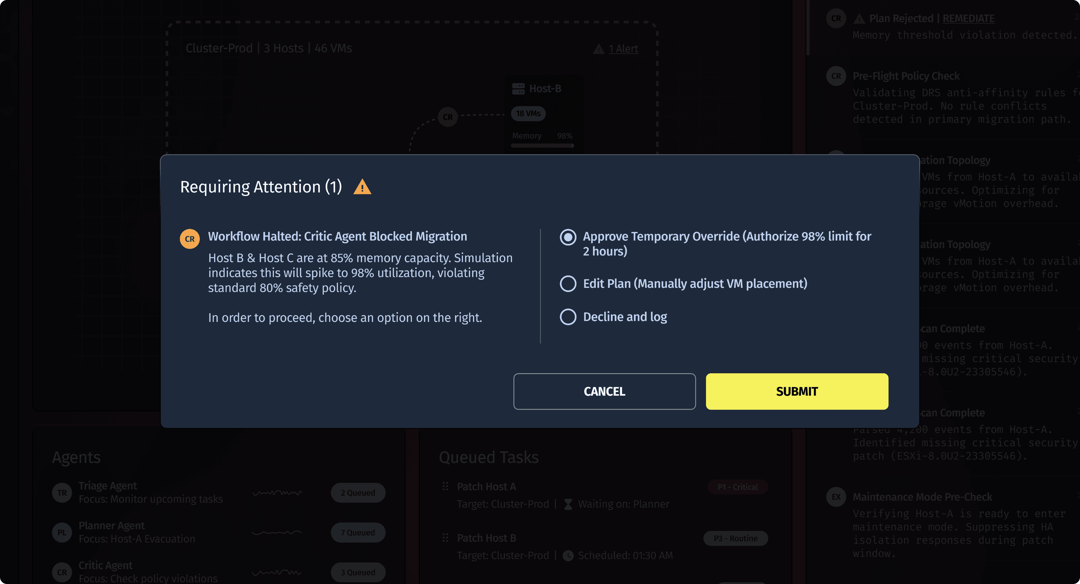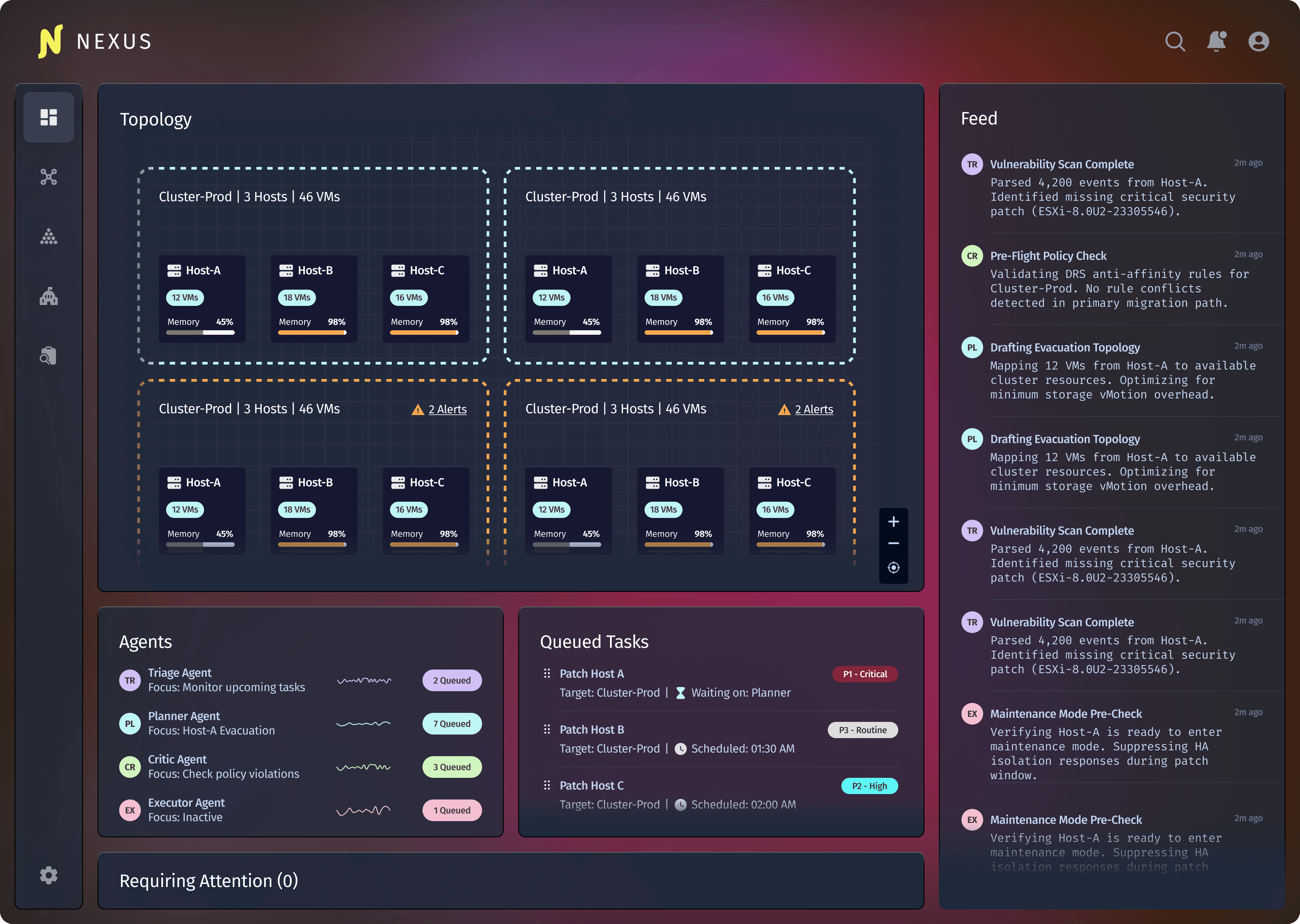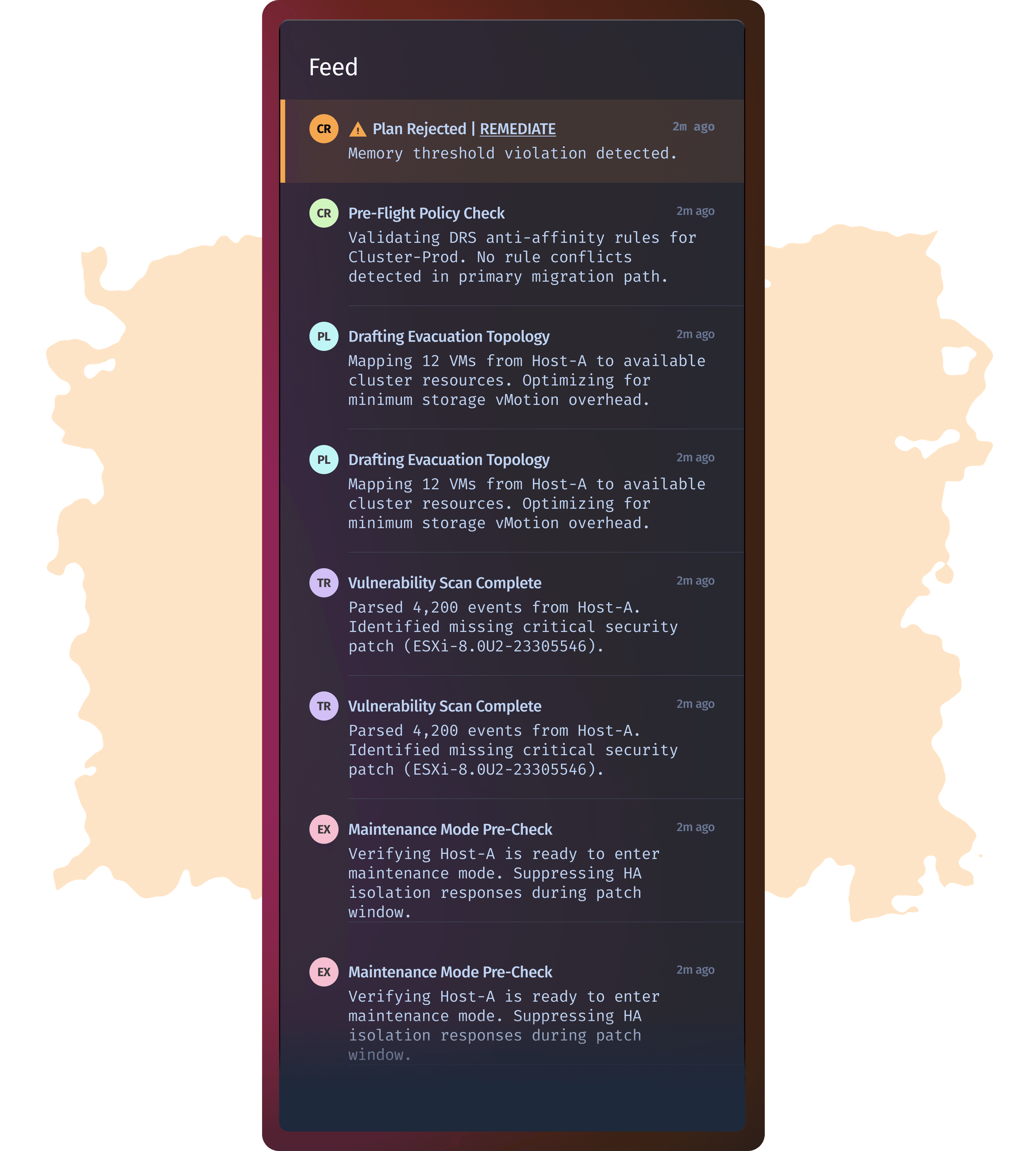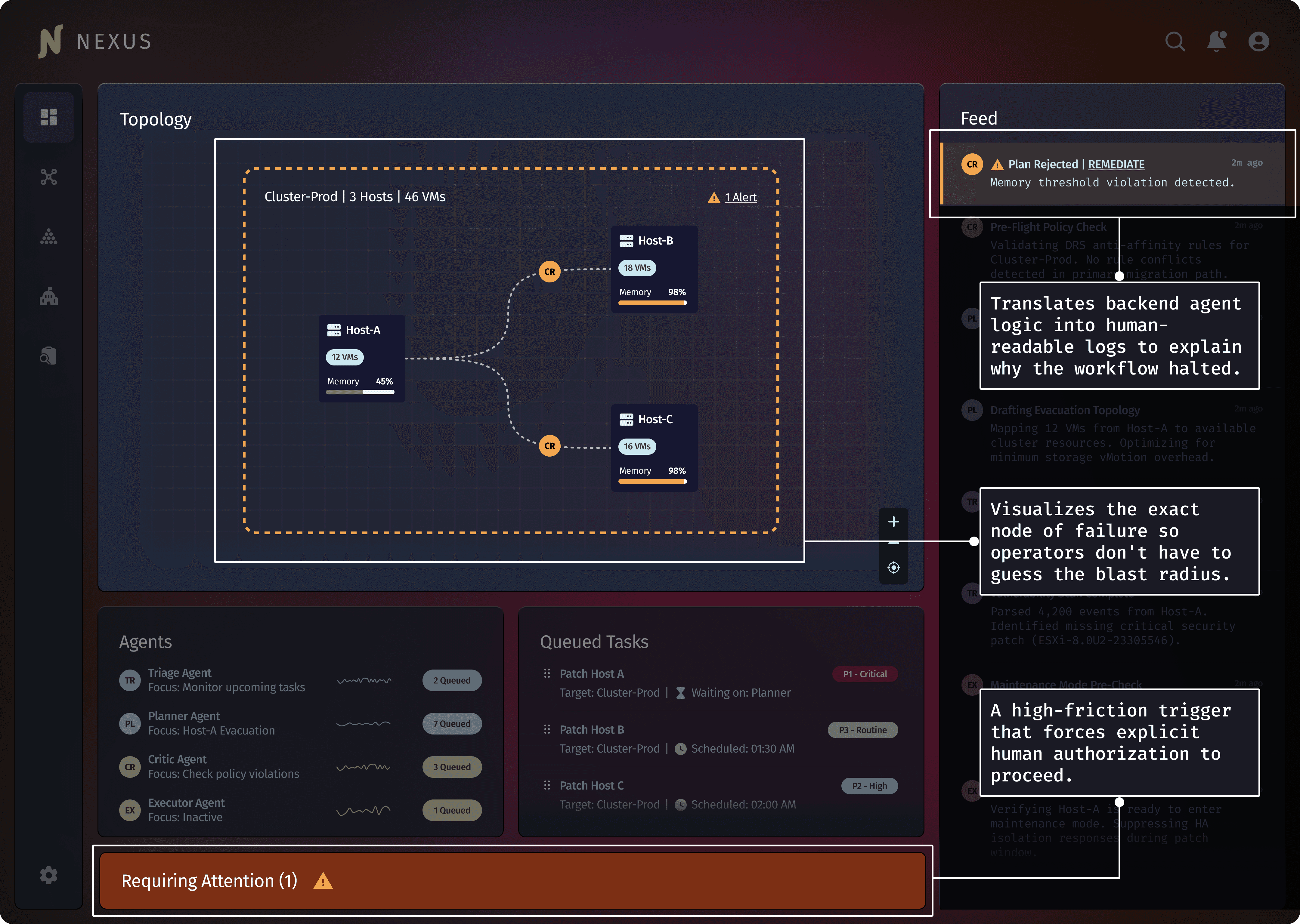Transparency Beats Magic: Operators don't want a "magic button" that fixes servers. They need spatial awareness (Topology) and chronological auditing (Feed) to trust the system's logic before authorizing action.