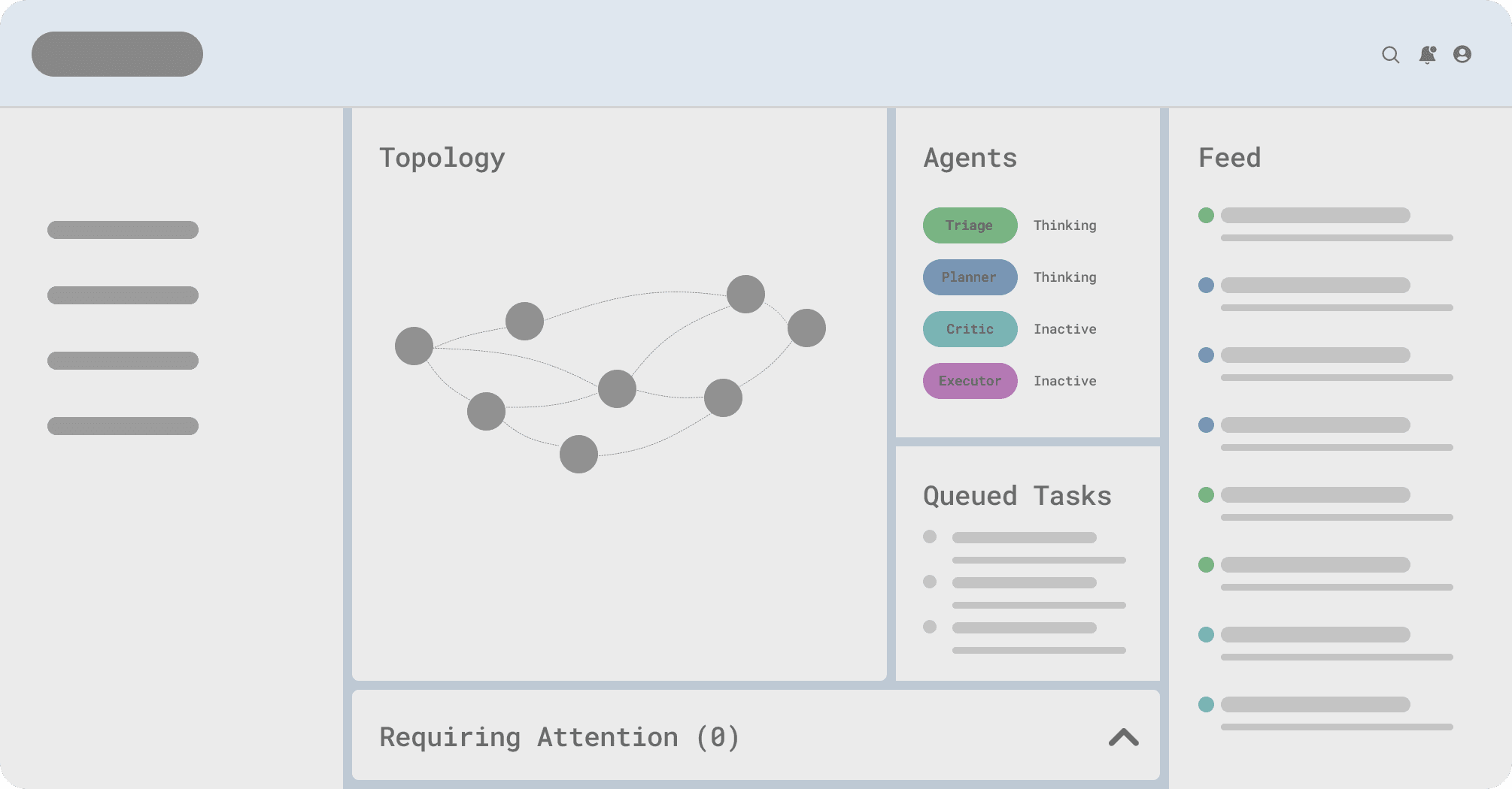 Before establishing the visual design, I defined the structure and layout of the app. I mapped the core components (topology, agents and feed) into a grid to ensure the interface could scale as complexity increased.