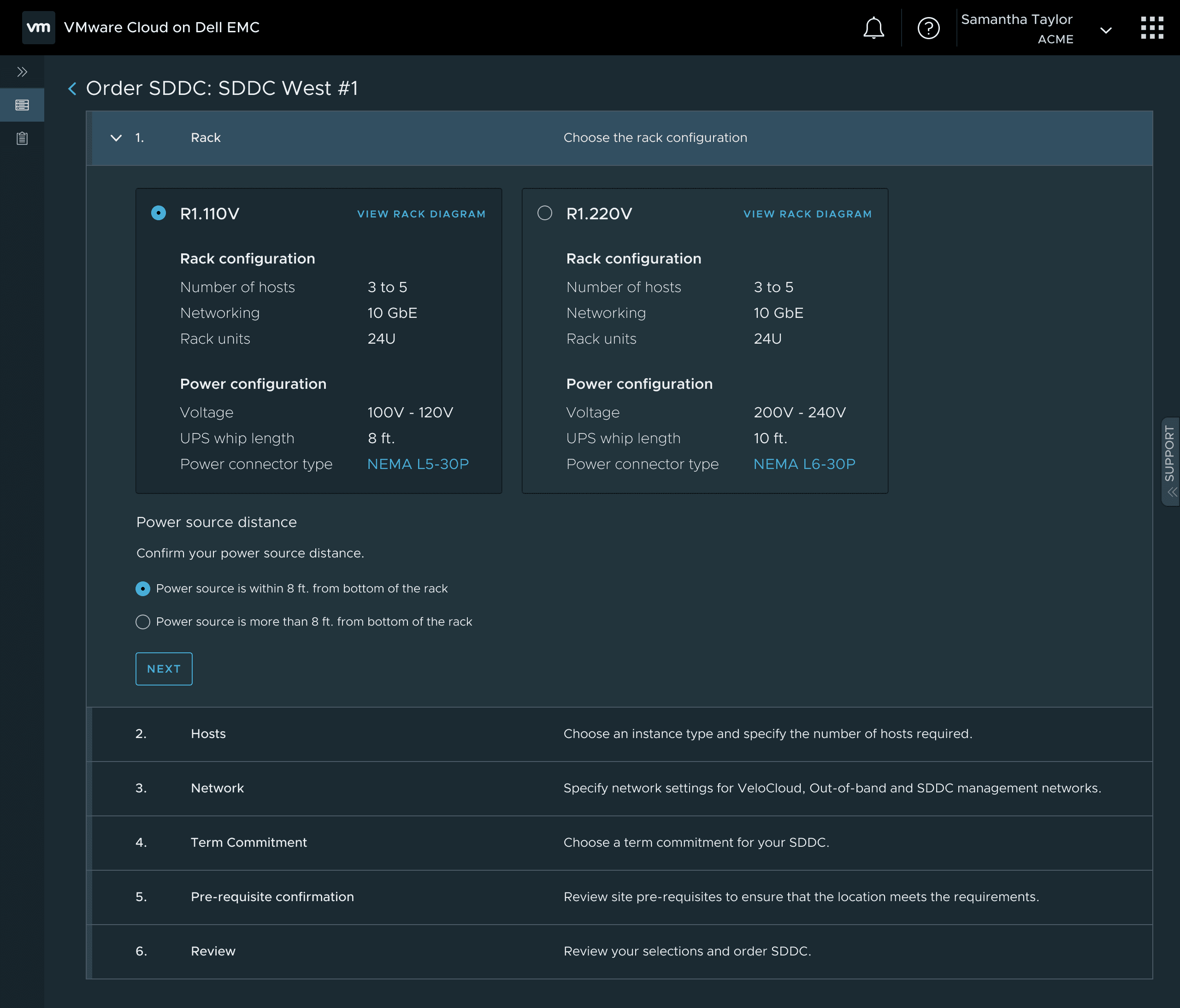 I designed a streamlined step-by-step ordering flow by abstracting the complexity of physical hardware procurement. Admins can select capacity, specify power drops, networking, and ship physical racks without ever leaving the digital console.