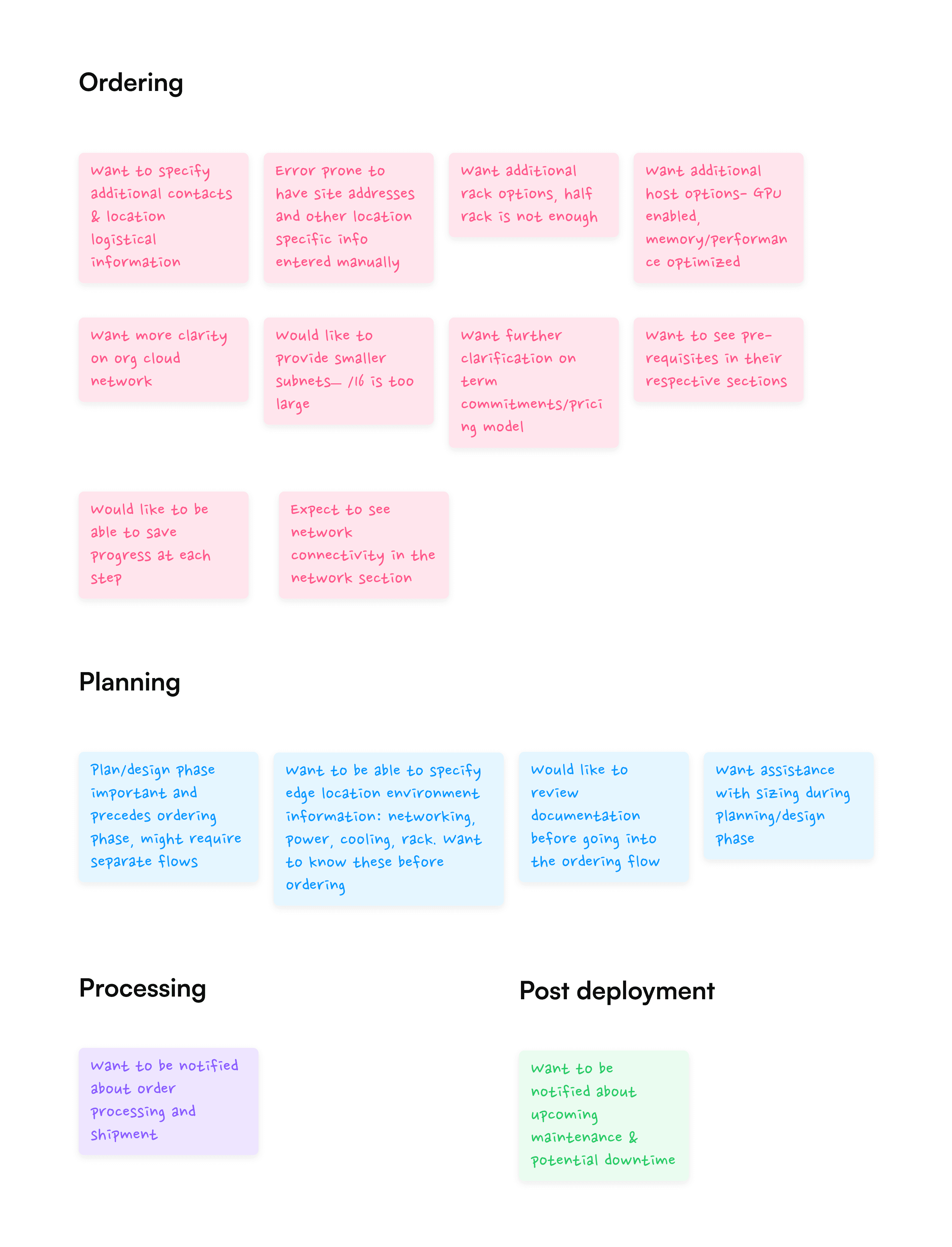 The self-service patterns established for VMC on Dell proved highly scalable. To adapt this architecture for VMware Cloud on AWS Outposts, I facilitated a cross-functional virtual workshop, aligning Product and Engineering stakeholders around a unified end-to-end service blueprint. This effort successfully established a single design standard for how VMware handles all physical 'Cloud to Edge' hardware services.