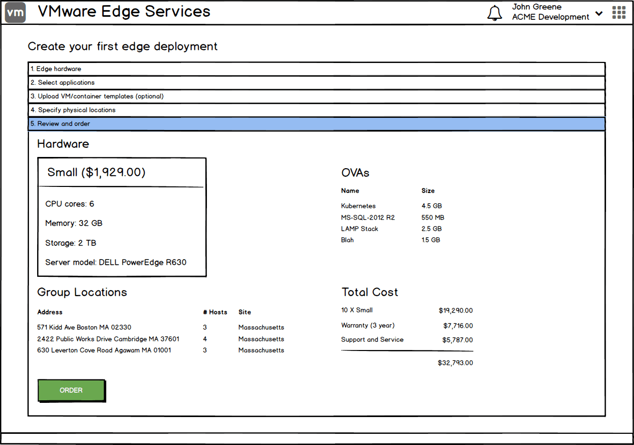 Partnering with product and engineering, I designed a self-service portal empowering IT admins to order and provision a fully managed physical infrastructure natively through the VMware Cloud console.
