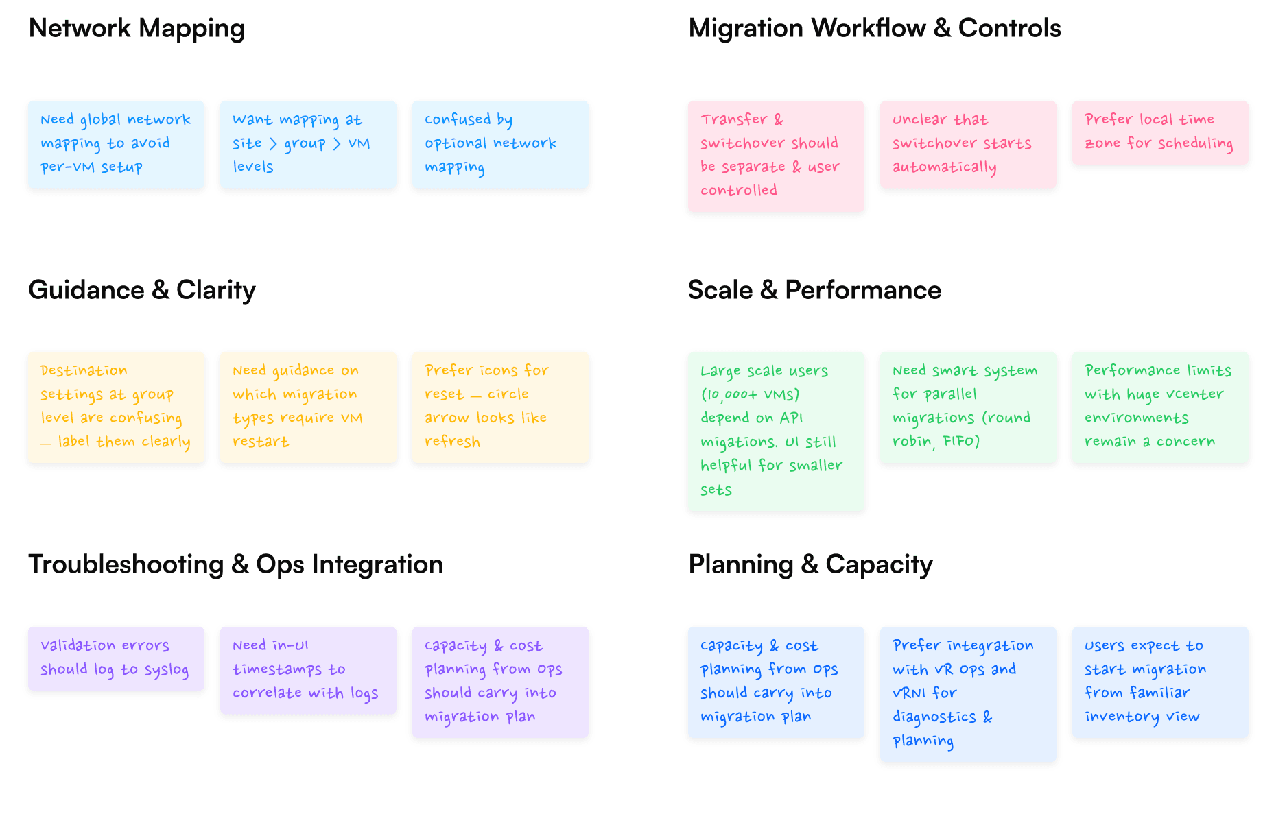 Partnering with product and engineering, I led the UX strategy to deprecate migration planning in legacy Net Ops UI, integrate it directly into the modern Operations Console, and modernize HCX UI for future platform consolidation.